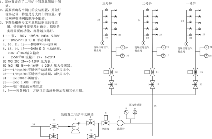 2.2 圖紙只顯示系統(tǒng)原理圖,各部件不顯示具體位置,具體位置電廠在我公司進場時,