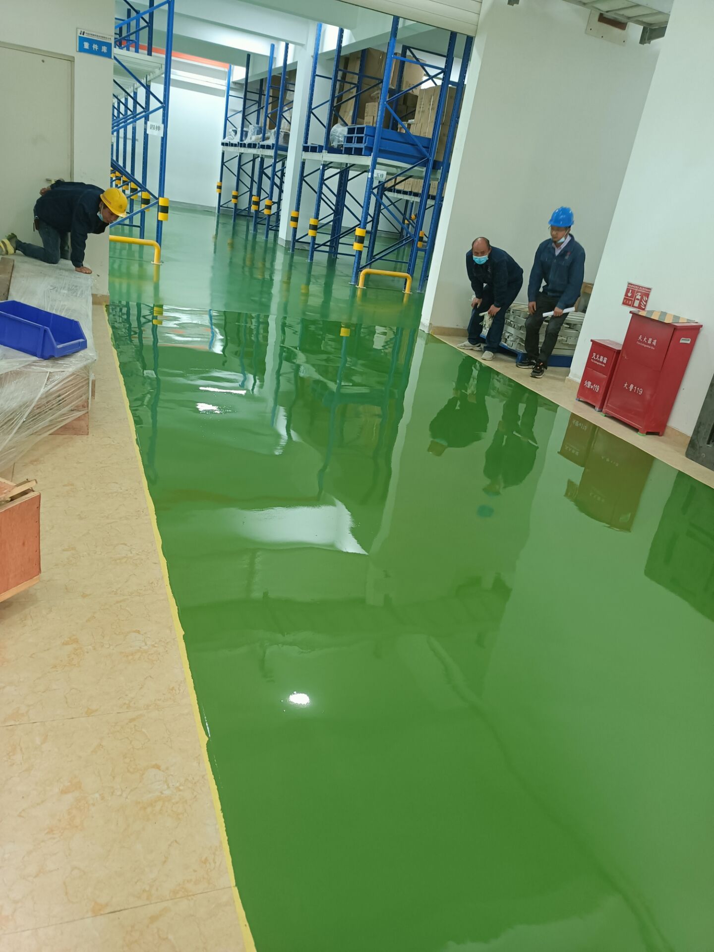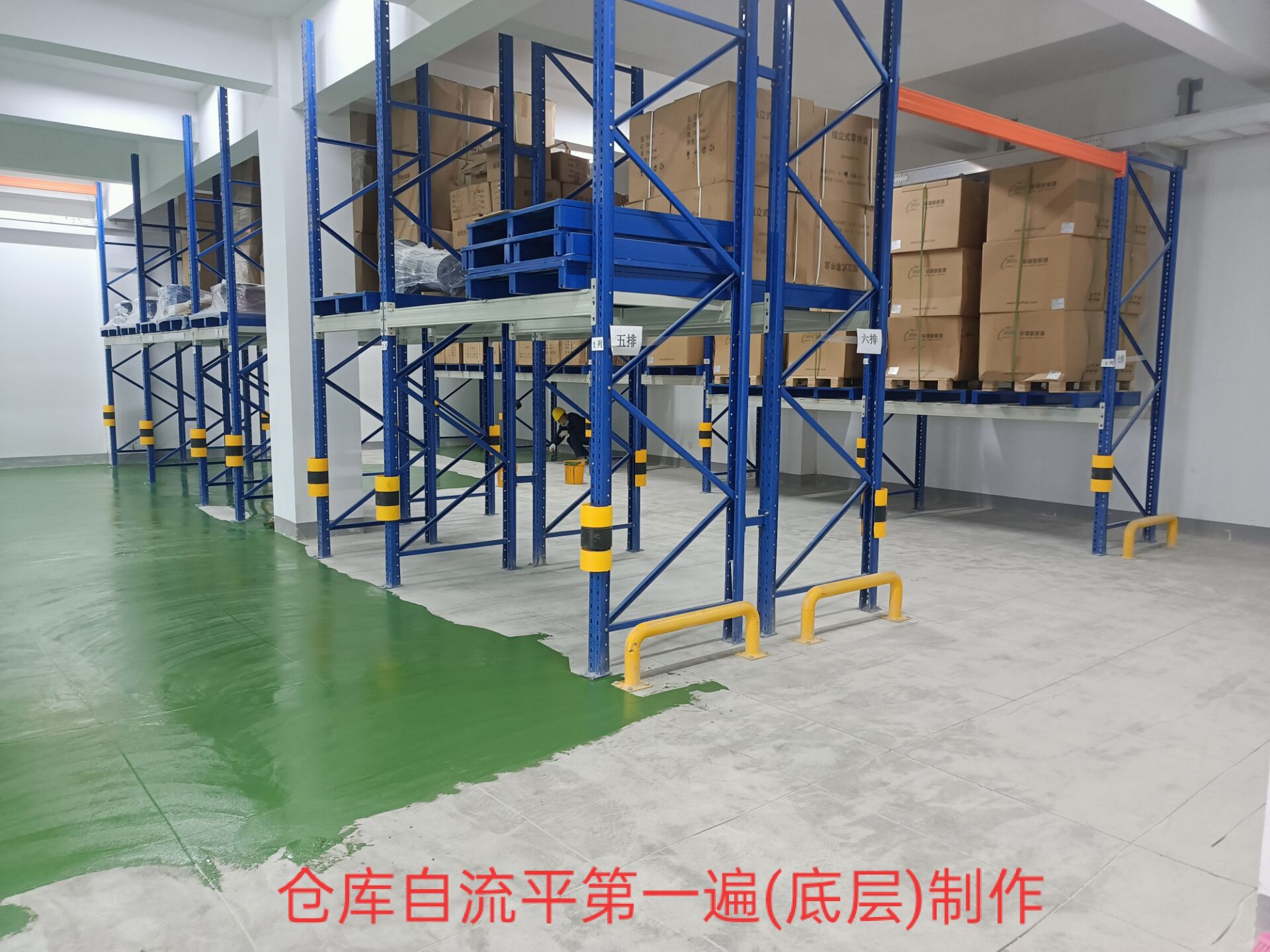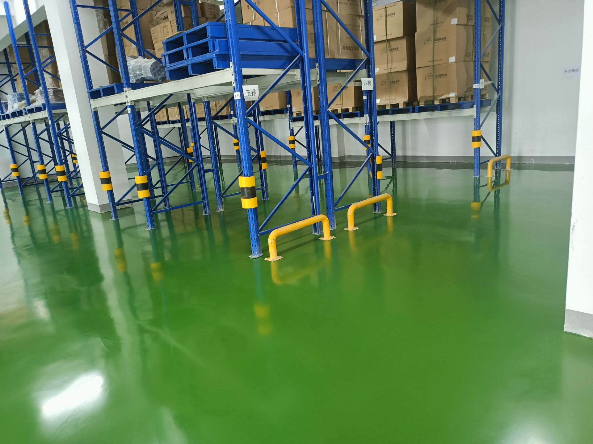 在倉儲(chǔ)系統(tǒng)中,貨物進(jìn)出的搬運(yùn)對(duì)地面的碾壓強(qiáng)度較高,聚氨酯自流平不但起到了亮化環(huán)境的作用,而且硬度夠,此工藝比較適合倉儲(chǔ)環(huán)境使用。