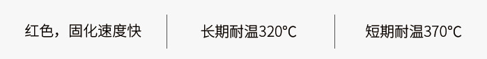紅色,長期耐溫320℃,短期耐溫370℃,固化速度快,可粘接金屬、玻璃等多種材質(zhì),適用于高溫工況的密封與粘接。
