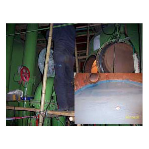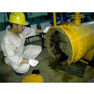 5、用空氣對管板在一次清潔,將加熱脫落的泥垢清除。并繼續(xù)加溫保持。