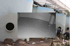 3、表面打砂,要求Sa:2.0以上,噴砂按船舶水倉和油艙的噴砂工藝