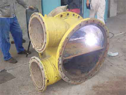 施工內(nèi)容:1、將端蓋浮泥狀的物質(zhì)全部清理干凈,金屬光澤,最好噴砂除銹