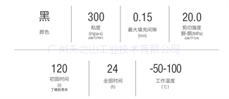 黑色,中粘度,具有優(yōu)異的抗沖擊、抗振動、抗剝離及耐熱性能。