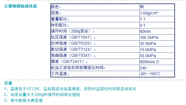 雙組份,膠泥狀,綜合機械性能高,用于各種鑄鋼件缺陷的修補及零件磨損、劃傷、腐蝕、斷裂的修復。